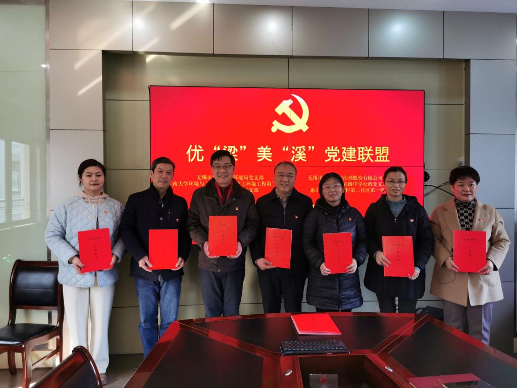 环境与土木工程学院教工环境工程第二党支部、无锡市太湖湖泊治理股份有限公司党支部、无锡市市北高级中学行政党支部、黄巷街道机关第三党支部、惠山街道曹张新村第二社区第一党支部共5个党支部组建的优梁美溪“1+5”党建联盟签约座谈会在无锡市市北高级中学举行。教工环境工程第二党支部书记郁红艳老师和支部滕跃老师参加了活动。