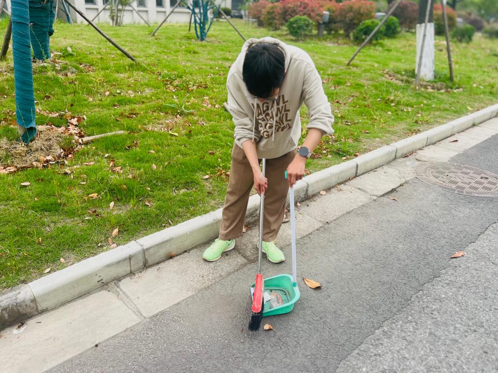 在党员们纷纷完成自己变废为宝的作品后,怀着兴奋的心情,宋哲楷组织大家又开启了“徒步环保行,垃圾不落地”活动。在学院楼大厅集合后,大家领到了垃圾袋、扫帚和撮箕等工具,随后,沿着学院楼→牡丹园→学院楼(西侧出发,东侧回)的路线有序前行。一路上,党员们认真细致地清理道路两旁和绿化带中的垃圾,不放过任何一个卫生死角。他们用实际行动为校园环境“美颜”,路过的师生纷纷投来赞许的目光。此次徒步环保行,不仅让校园环境更加整洁,也向身边的人传递了环保行动的重要性。