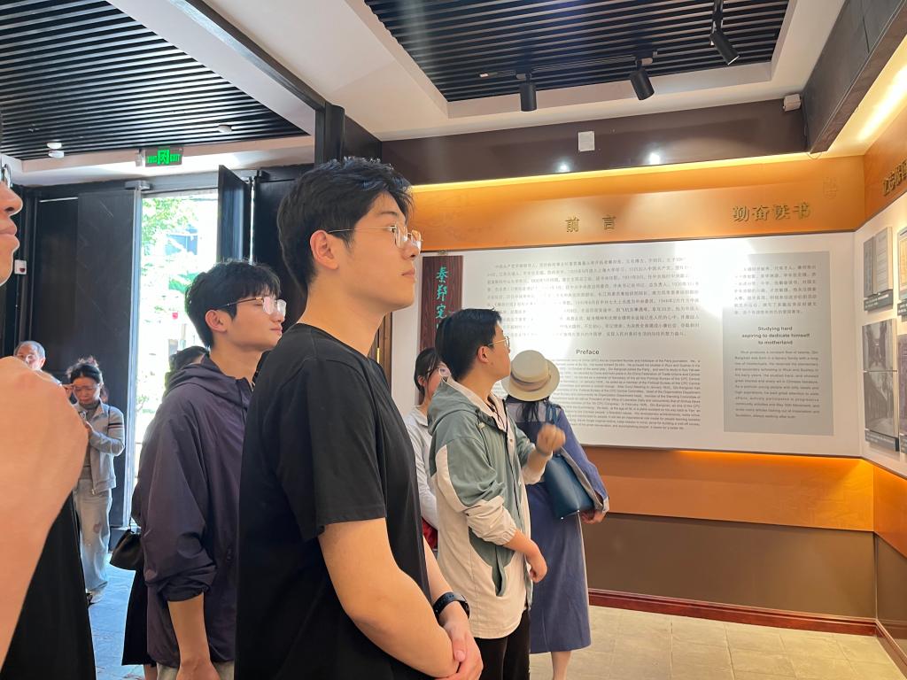 紧接着,大家参观了故居内的“秦邦宪生平事迹陈列”展。展览分为《勤奋读书 立志报国》、《新闻事业 辉煌新篇》、《临危受命 历尽艰难》等六个部分。在参观过程中,同志们驻足凝视泛黄的家书、磨损的钢笔等文物,特别是了解到秦邦宪同志主持创办《解放日报》、翻译《共产党宣言》等重要事迹时,深刻感受到老一辈革命家"革命理想高于天"的坚定信念。展览中二百余件历史照片及实物资料,真实、生动、形象地再现了秦邦宪同志为中国人民解放事业作出了重要贡献的辉煌一生。