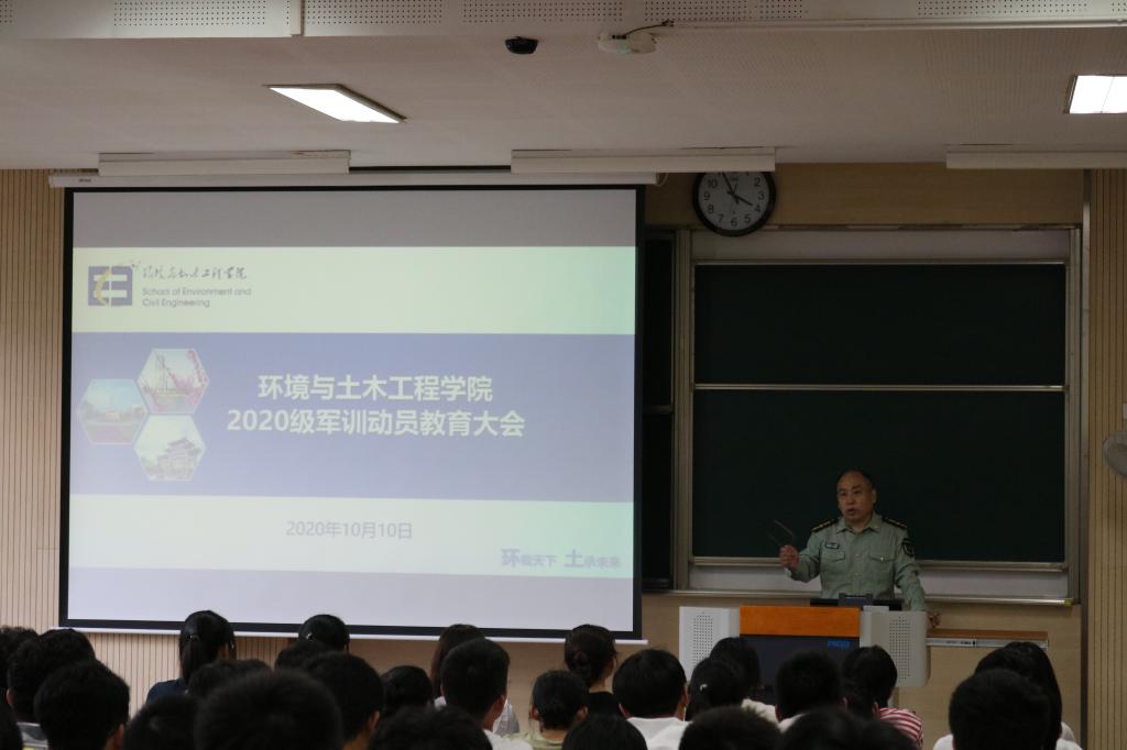 2020年10月10日下午,环境与土木工程学院在1B103教室召开2020级新生军训动员大会。学校人武部韦红武、辅导员周佳赟、何涛、薛羚伟以及2020级全体同学参加了会议。典礼由周佳赟主持。