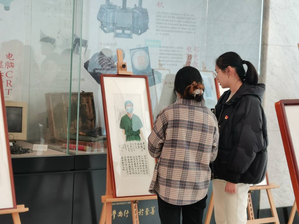 环境与土木工程学院本科生土木专业党支部与本科生环工工管专业党支部党员在本科生土木专业党支部书记薛羚伟的带领下,前往图书馆一楼观看刘观庆老师的“抗疫群英谱”画展。在观看抗疫英雄画像的同时感悟抗疫精神,坚定理想信念。
