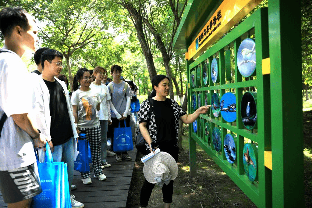 6月1日上午,全体党员齐聚长广溪湿地公园进行相关学习交流。环境与土木工程学院副教授王丽红首先为大家讲解了长广溪湿地公园的历史沿革、生态情况以及园内生物种类等。其中蝴蝶和鹤的生物标本更是让党员们眼前一亮,激发了党员们了解认识生物的兴趣,提升了学习生态知识的积极性。