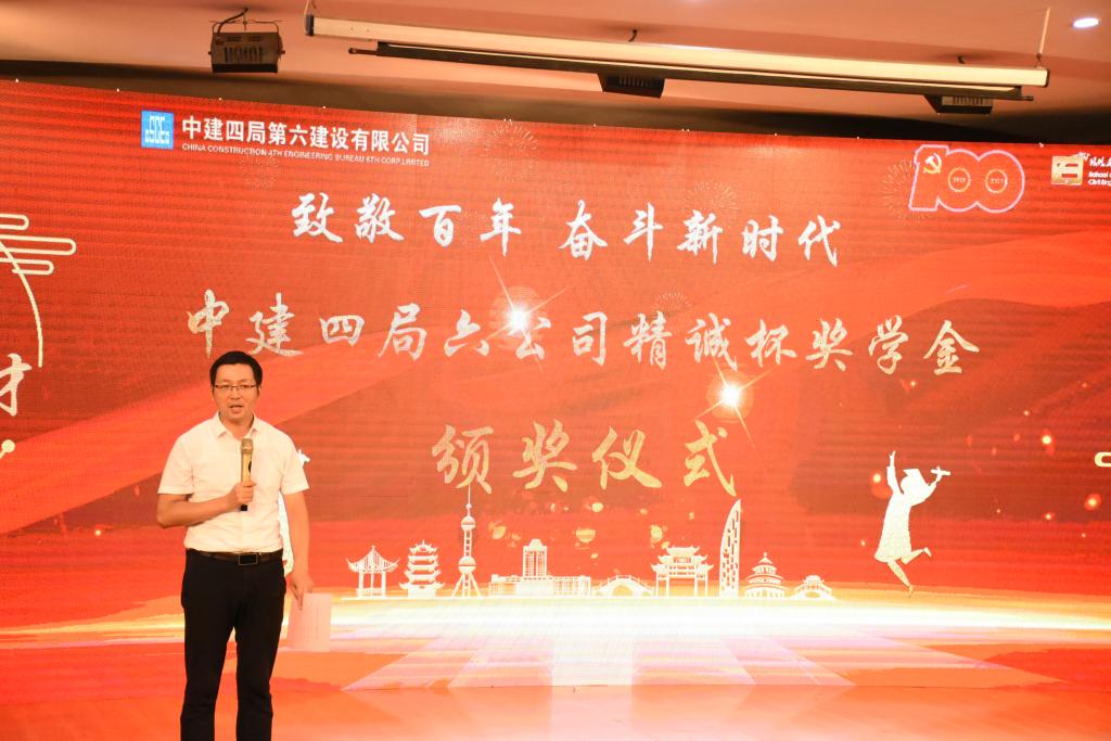 随着暖场视频《强国一代有我在》的播放,晚会正式开始。院党委书记李艳在致辞中对毕业生们的收获表示祝贺,用“环土英才,建设未来”勉励毕业生牢记习近平总书记嘱托,让青春在为祖国、为民族、为人民、为人类的不懈奋斗中绽放绚丽之花。随后,中建四局六公司上海分公司党委副书记车其杰宣读了中建四局六公司“精诚杯”奖学金获得者名单,领导、老师为学生颁奖。