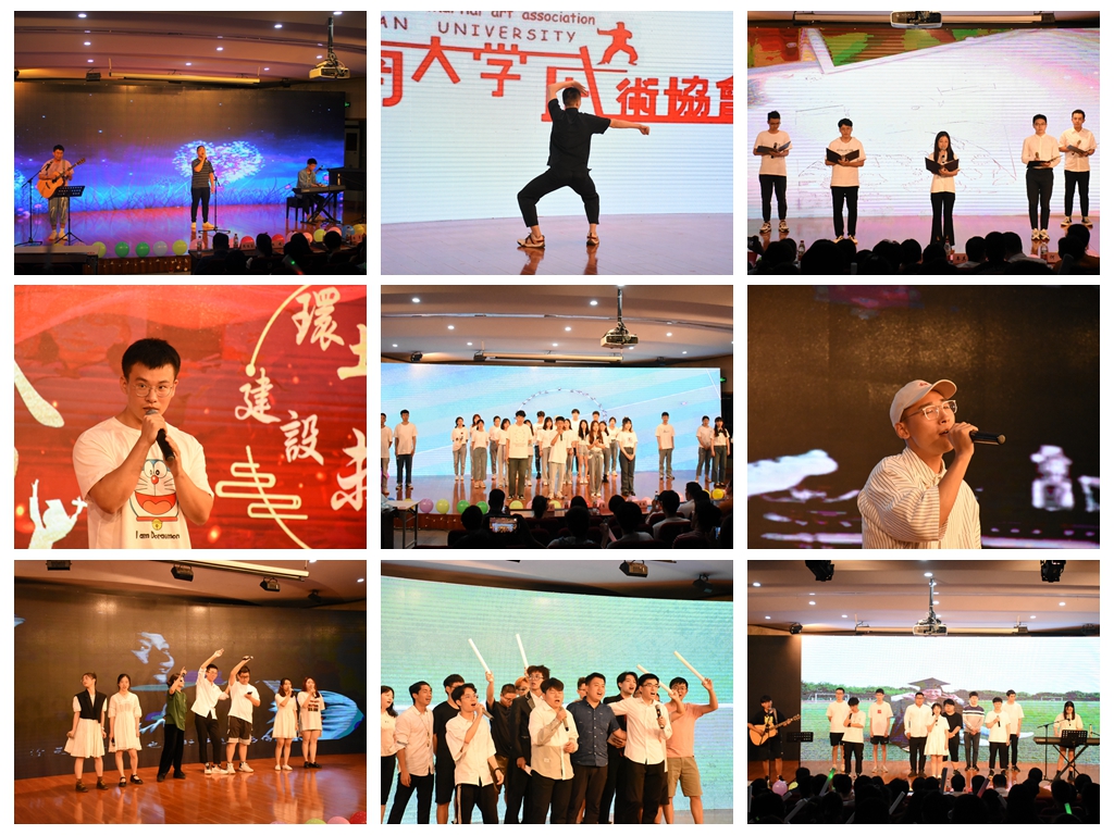晚会上,环土学子利用多种表现形式呈现了一场丰富多彩的视听盛宴。党员节目《没有共产党就没有新中国》唱出了环土学子的拳拳爱党爱国之心;武术节目《武动乾坤》让大家感受到中华武术的博大精深和深邃豪迈;歌伴舞《修炼爱情》用灵活的肢体动作演绎了他们走过的青春岁月;一首首歌曲深情回顾了同学们成长、励志、拼搏的心路历程,再现了美好的大学时光、难舍的同窗情谊,现场感动的泪水和掌声交织在一起……