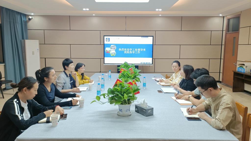两位领导到学院后,由党委副书记、副院长胡娟做接待工作,团委书记兼学工办主任周佳赟、辅导员薛羚伟、何涛和李东辉一起参与了交流会。学院首先汇报了心理工作站建设情况,从三全心理育人机制建设阐述了学院的心理工作情况,并且汇报了近期学生心理微动态,以及近期心理工作安排和计划。李处长详细询问了学院心理工作遇到的问题和困难,点出了学院心理工作室建设的优缺点,并有针对性的提出了宝贵建议。