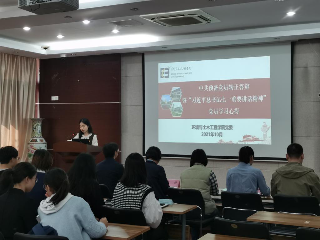 根据党员发展工作“三投票三公示一答辩”实施办法,为进一步加强党员教育、提高党员意识,10月29日下午,环境与土木工程学院党委在学院楼D303召开预备党员转正答辩大会。学院党委书记李艳,院党委副书记兼副院长胡娟,院党委专职组织员沈炎,团委书记兼学工办主任周佳赟,辅导员何涛以及各学生党支部书记组成答辩小组。此次拟转正的21名预备党员参加答辩,会议由学生党务中心宣传实践部部长季亚卉主持。