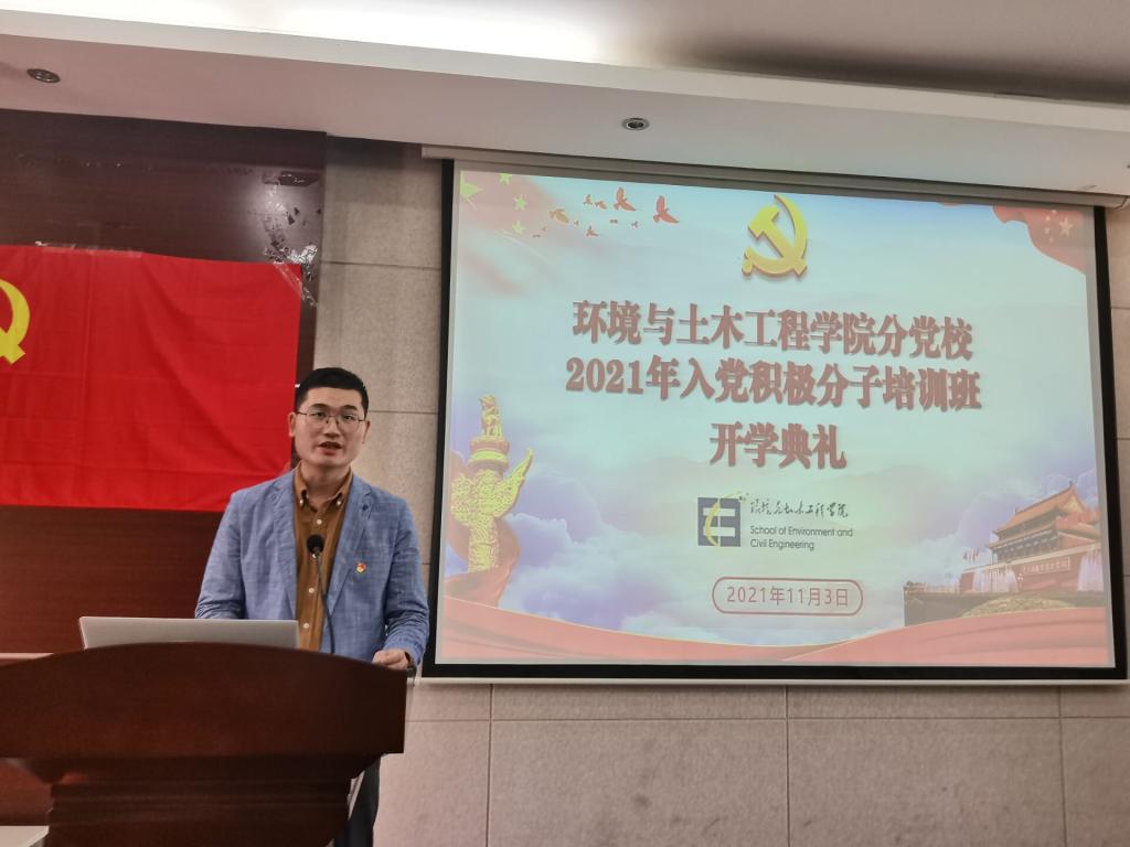 为进一步加强对入党积极分子的培养、教育和考察,提升入党积极分子的理论素养,扎实推进党史学习教育,环境与土木工程学院于2021年11月3日在学院楼D303举办入党积极分子培训班开学典礼。环境与土木工程学院党委副书记、副院长胡娟、玩偶姐姐