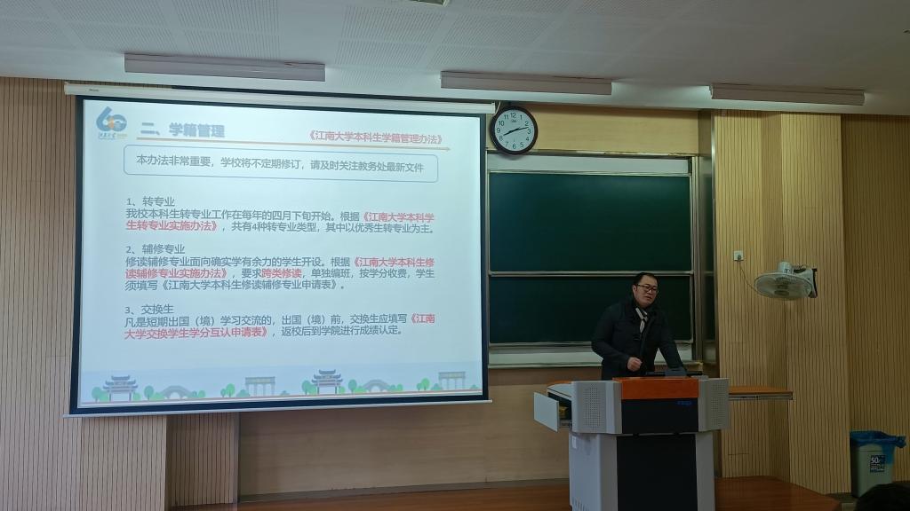 为了让2021级新生更加充分地了解学籍管理相关规定,更好地规划自己的学习计划和职业生涯规划。2021年11月23日,环境与土木工程学院在1B103教室举办新生转型教育讲座--“学籍管理规章制度解读”专题讲座。本次讲座由环境与土木工程学院教务秘书王硕老师主讲,全体2021级新生聆听了讲座。21级辅导员李东辉主持讲座。