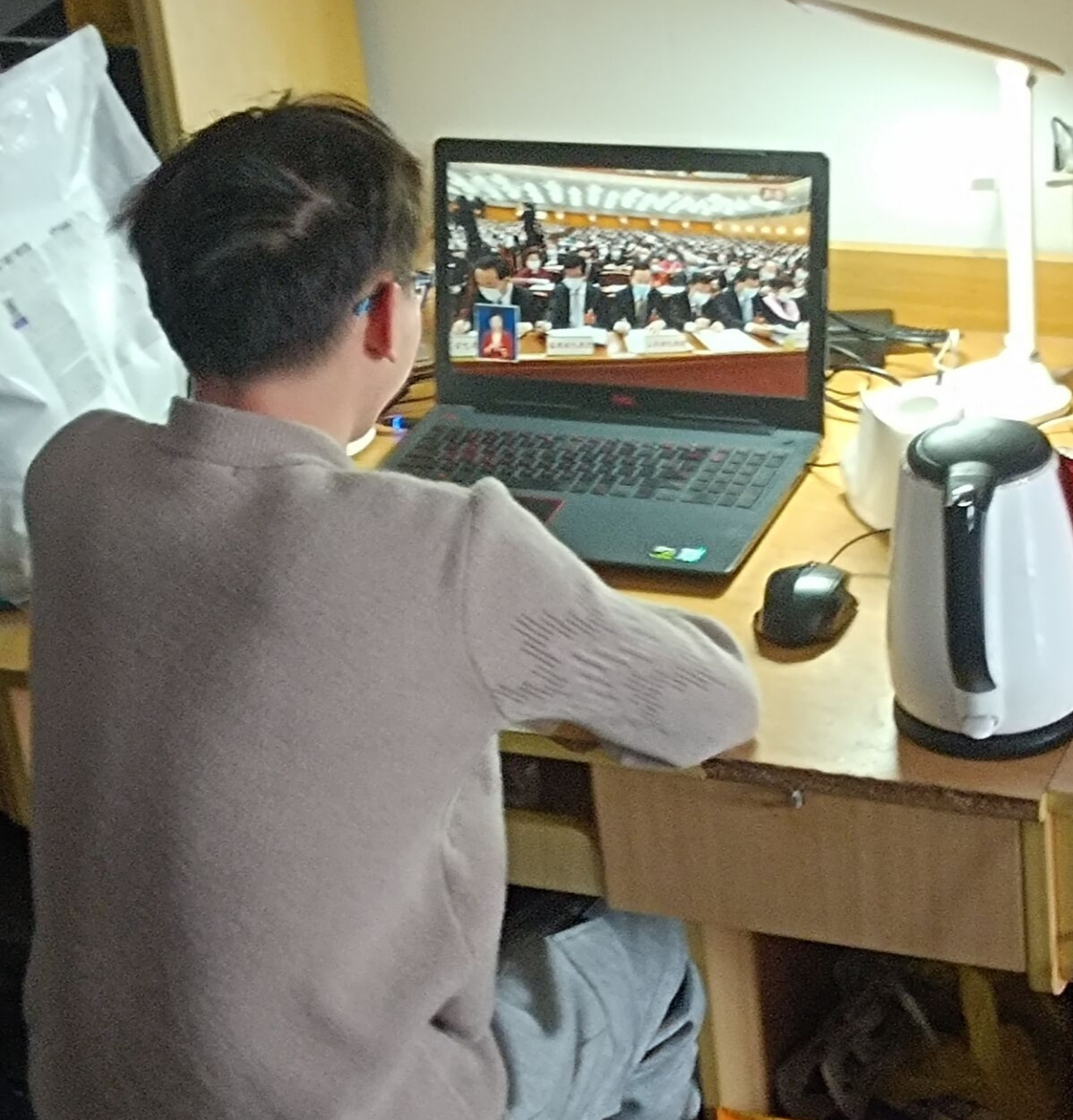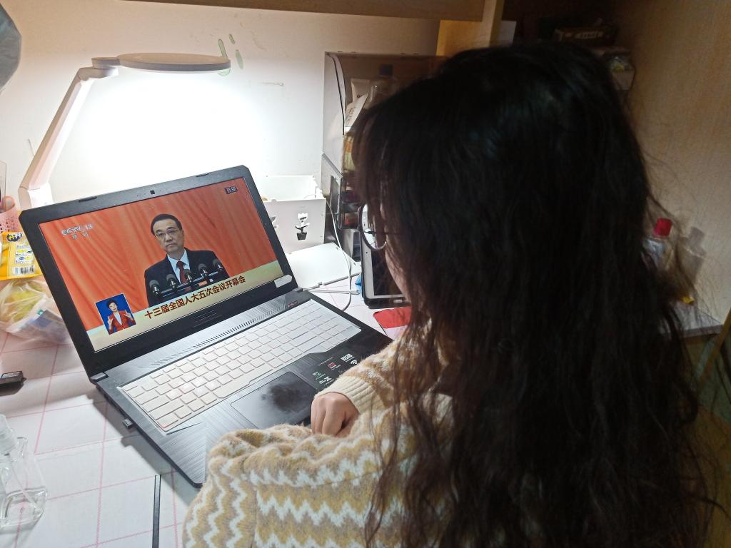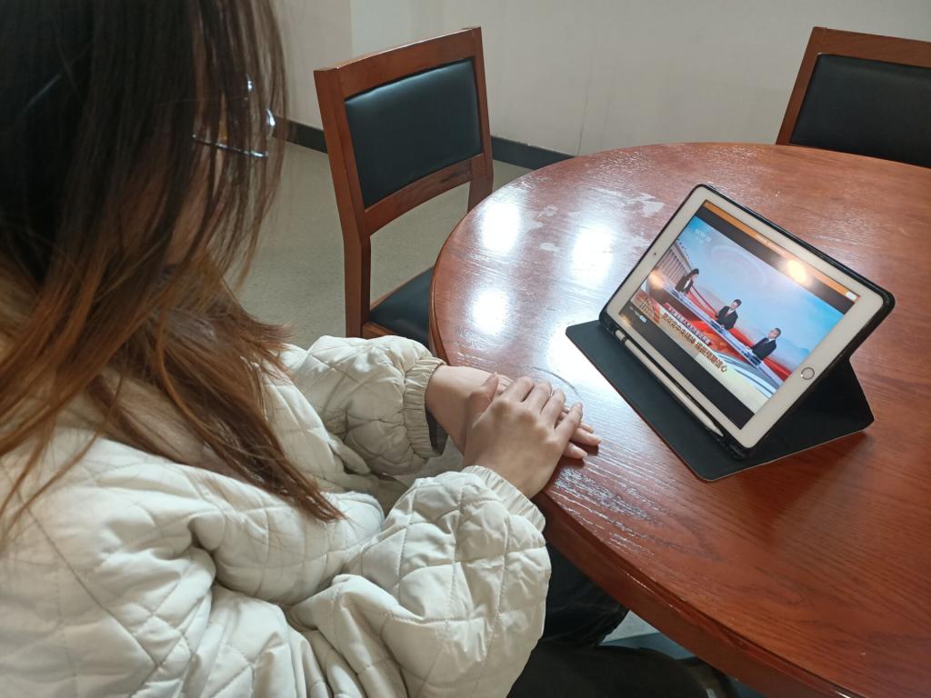 学生党员收看学习两会开幕式