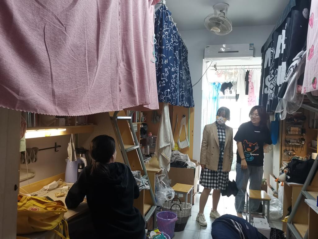在走访学生宿舍的过程中,老师们与同学们进行亲切交流,在交流中实时掌握了学生的思想和心理动态,针对学生普遍关心的疫情防控、线下教学、进出校管理、实习就业等问题进行耐心的解答和正确的引导,切实了解到了学生的学习、生活状况。老师们还提醒学生提高安全意识,树立安全防范理念,注重宿舍安全及卫生问题,注意消毒通风,保持宿舍清洁。