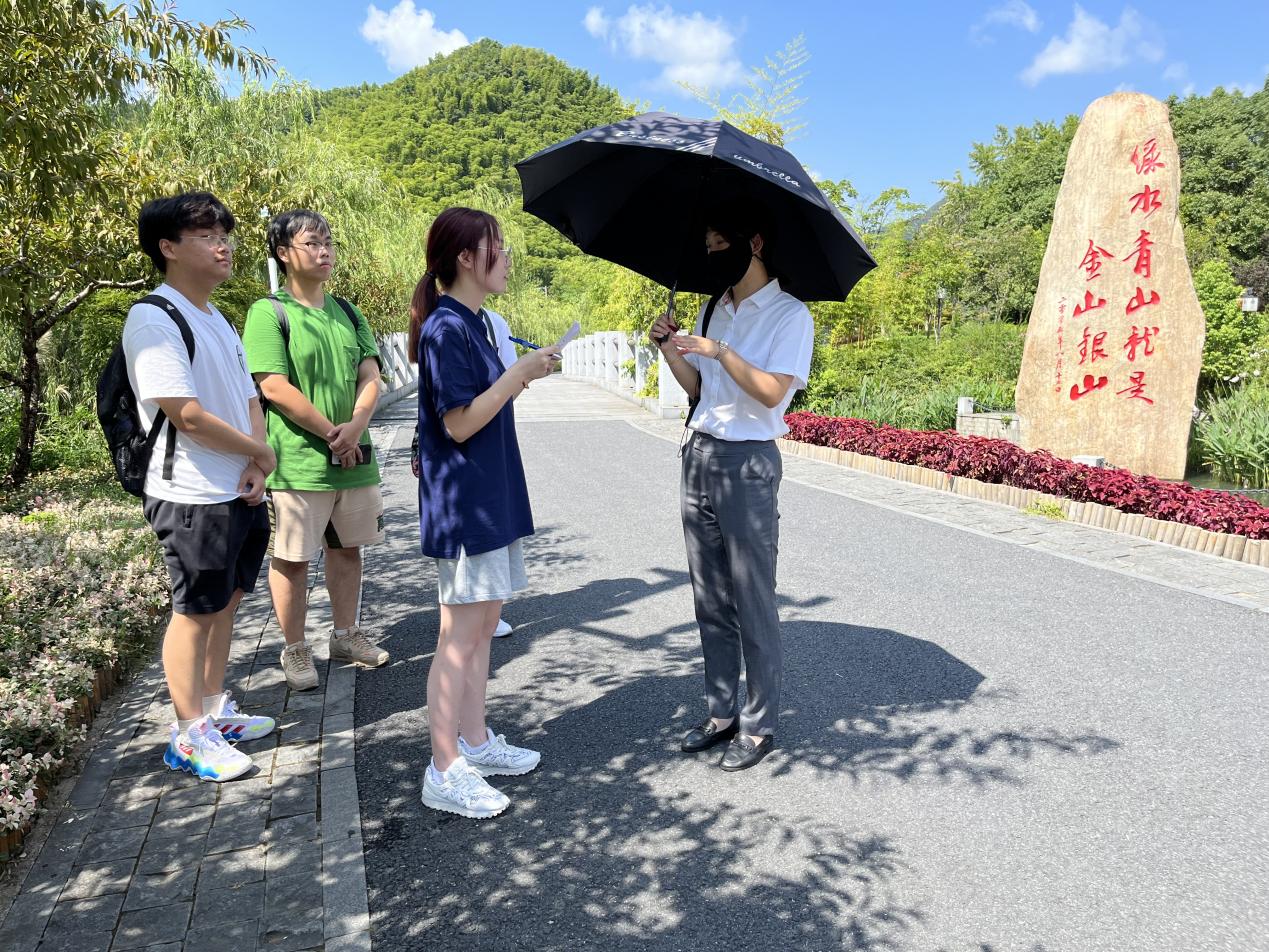 余村工作人员为实践团队讲解“两山”理论的来源
