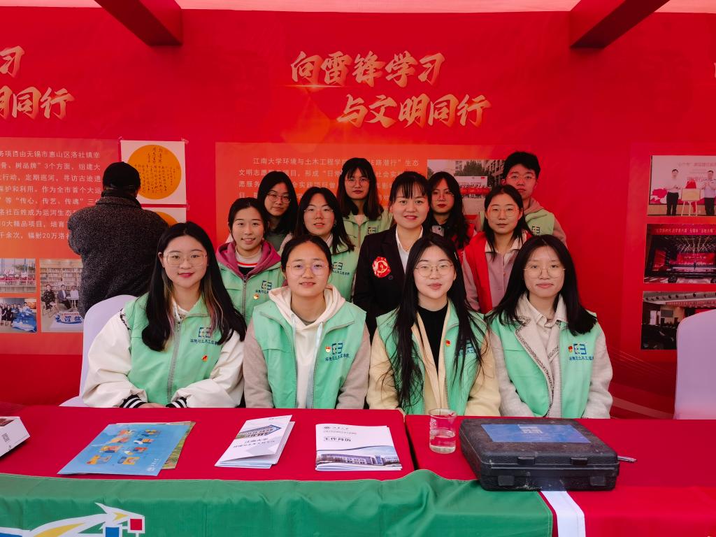 学院“E路潜行—生态志愿服务”项目在2022年度无锡市学雷锋志愿服务先进典型宣传推选活动中,被推选为“优秀志愿服务项目”,学院分团委书记周佳赟代表上台领奖。“向雷锋学习,与文明同行。”环境专业党支部立足专业,发挥专业精神,展示大学生的青春风采。展会上介绍玩偶姐姐