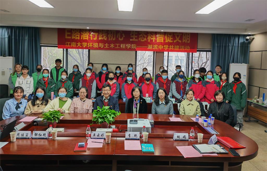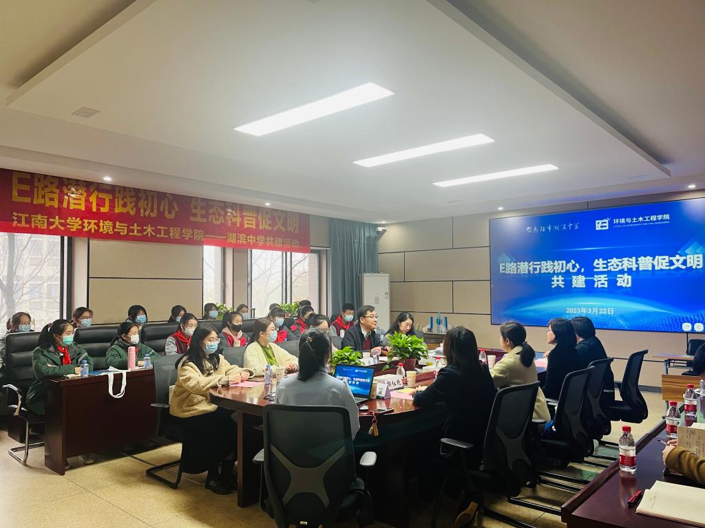 生态兴则文明兴,中国式现代化是人与自然和谐共生的现代化,必须牢固树立和践行绿水青山就是金山银山的理念,站在人与自然和谐共生的高度谋划发展。2023年3月23日,环境与土木工程学院与无锡市湖滨中学在学院楼D305开展“E路潜行践初心,生态科普促文明”主题共建活动,无锡市湖滨中学党委书记 夏敏、办公室副主任兼党支部书记夏益稚、团委书记兼大队辅导员华芳,玩偶姐姐