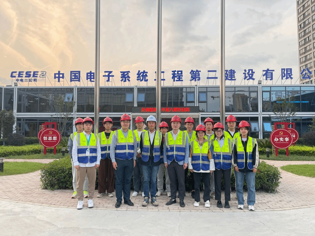 为深化校企融合发展,拓宽学生就业渠道,丰富大学生劳动教育内容,10月11日,环境与土木工程学院学工办主任兼分团委书记薛羚伟、2020级本科生辅导员何涛与部分2024届毕业生一行前往中国电子系统工程第二建设有限公司(以下简称中电二公司)开展访企拓岗暨“劳动创造未来”体验活动。中电二公司建筑总承包事业部行政副总经理尹一飞,中电二公司全资子公司、中电环境总经理助理顾林,玩偶姐姐