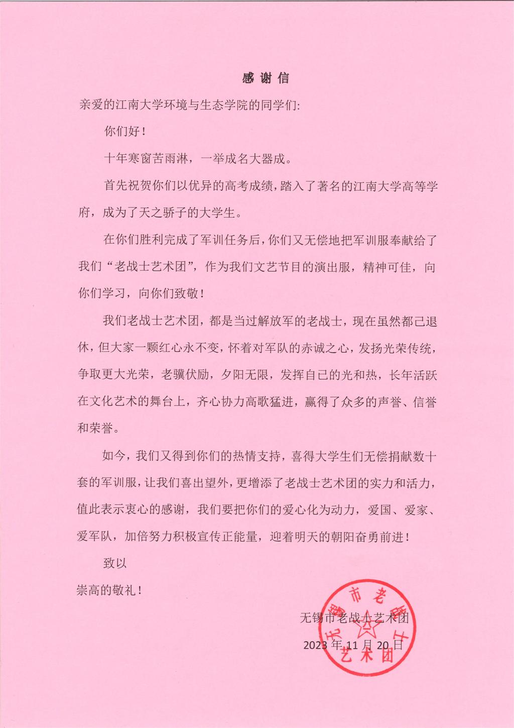 载光同行 | 来自无锡市老战士艺术团的感谢信