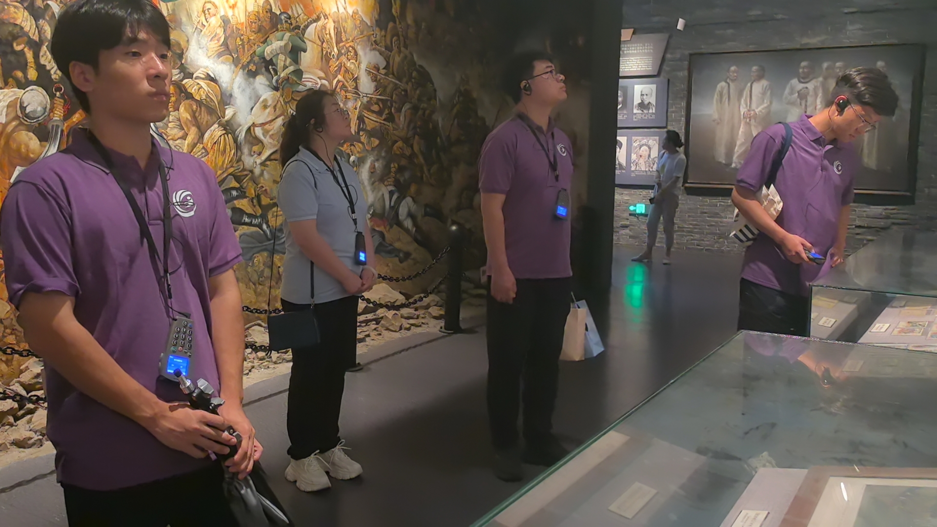 在青岛一战遗址博物馆,团队成员通过参观珍贵文物、档案资料,以及场景复原、多媒体展示等,情景再现了自青岛建制至主权回归的艰难历程。沧桑之变路艰辛,风雨归程多磨难。旧中国青岛回归的往事,是一段不堪回首的历史,阐释着落后就要挨打的历史教训;是一段见证社会规律的历史,揭示了争霸好战者必亡的必然趋势;是一段昭示未来的历史,告诉人们走和平崛起之路才是民族兴盛的人间正道。