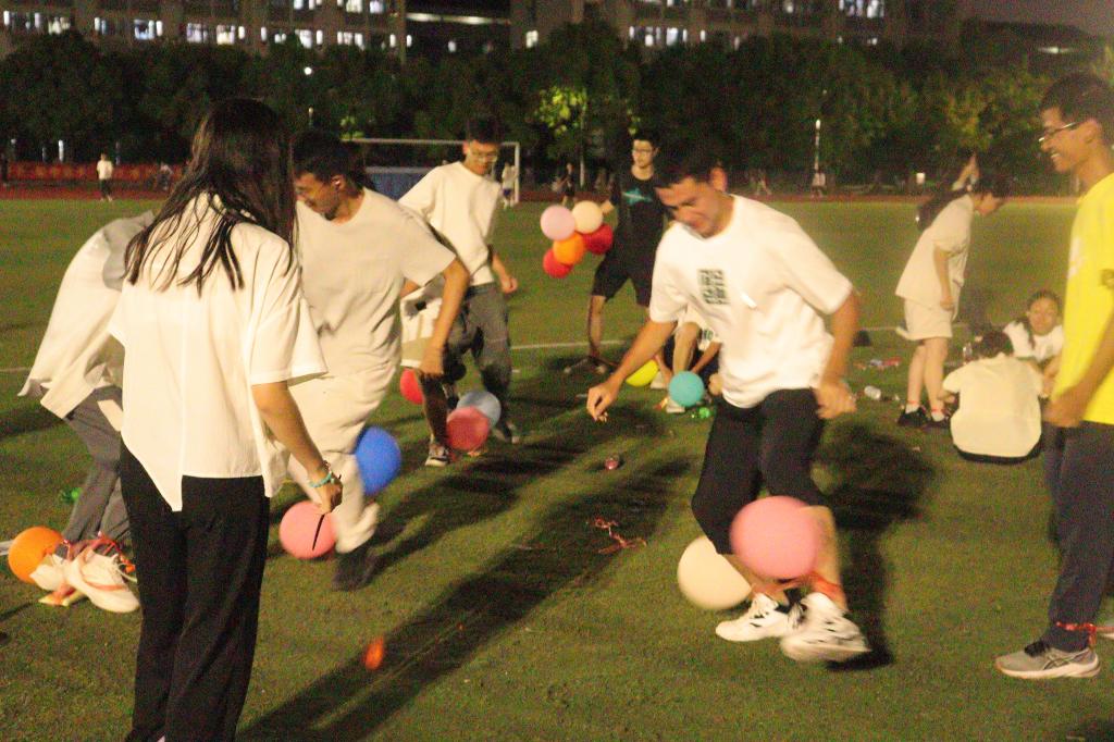 夕阳西下,落日余晖撒在同学们写下的贺卡里,第一项“猜猜他是谁”的活动拉开序幕,快速的点燃了现场的氛围。随后,同学的才艺表演让挥舞的手电代替了落日的光,美妙的歌声唱响着青春的美好。随机分组,席地而坐,“海龟汤”“看图猜成语”“真心话大冒险”等活动迅速拉进了同学们的心。激烈的踩气球活动将活动推向高潮,同学们双脚绑上气球,蓄势待发,一声令下,为了部门奋战,操场上满是奔跑的身影和悦耳的欢笑,气球“砰砰砰”,打破夜的宁静,也打破陌生的“冰”,热闹成为了操场的主旋律。紧接着的随机剧情演绎打开了同学们欢笑的阀门,大家捧腹大笑,欢乐洋溢在每个人的脸上。最后,破冰大会以动听的合唱落下帷幕,合影留念将美好定格。