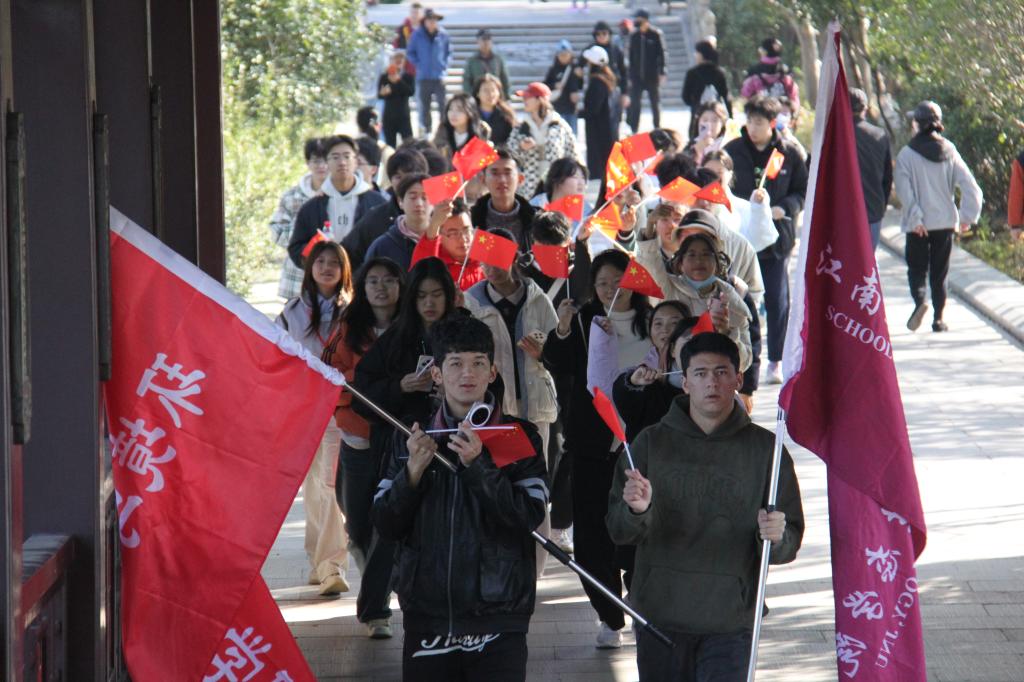 上午9时,同学们集合完毕,整装前往长广溪国家湿地公园,6.5公里的“长征”体验徒步行随即拉开帷幕。