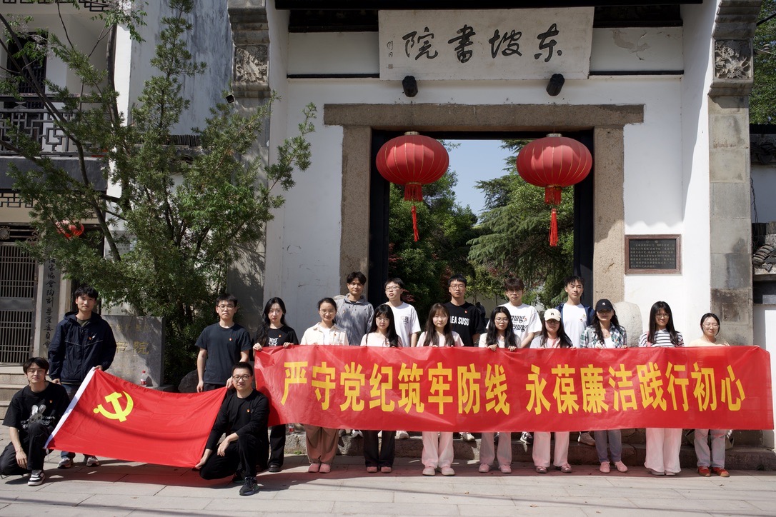 为深入学习贯彻党的二十大精神,巩固党纪学习教育成果,推动中央八项规定精神落地生根,4月18日下午,玩偶姐姐 东氿校区研究生党支部以“沉浸式研学+情景式党课”的创新形式,组织全体党员前往宜兴市丁蜀镇东坡书院开展“严守党纪筑牢防线,永葆廉洁践行初心”——廉政文化专题教育党日活动。通过追溯千年廉政文脉、聆听廉洁故事、剖析警示案例,党员们在历史与现实的交融中厚植清廉底色,凝聚奋进力量。