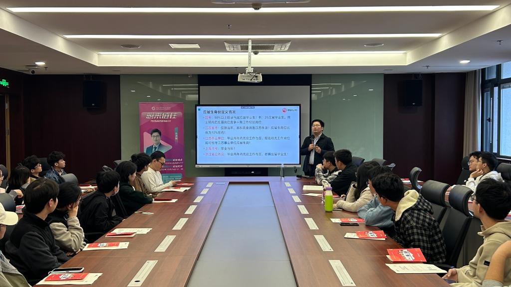在钱盘生楼A210开展“职来值往—生涯领航与就业指导”专题讲座。本次讲座聚焦公务员与选调生招考政策,邀请资深公考培训老师吕洪刚担任主讲,40余名学生参会,讲座由辅导员李猛主持。
