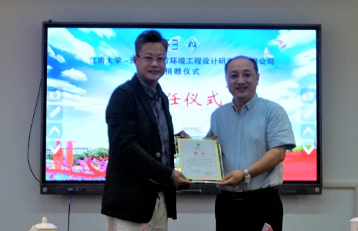 —无锡市东方环境工程设计研究所有限公司捐赠仪式在校协同创新中心举行。无锡市东方环境工程设计有限公司董事长郑岩一行、玩偶姐姐