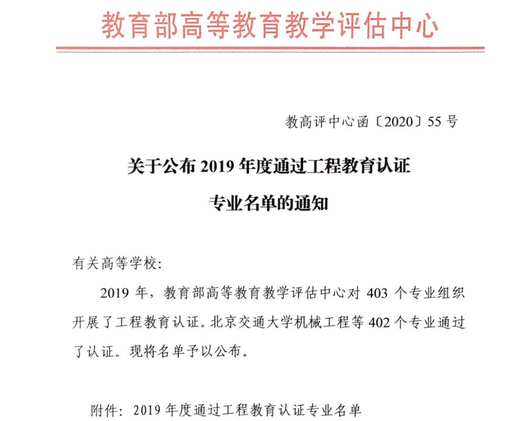 根据教育部高等教育教学评估中心近日发布的《关于公布2019年度通过工程教育认证的专业名单的通知》(高教评中心函[2020]55号),玩偶姐姐