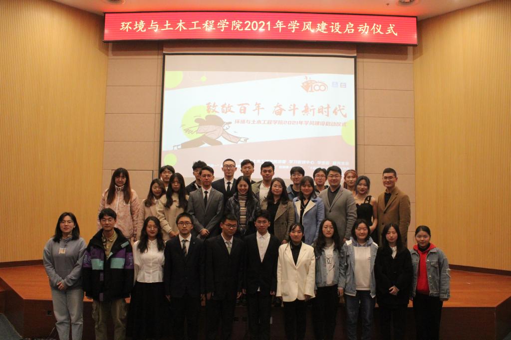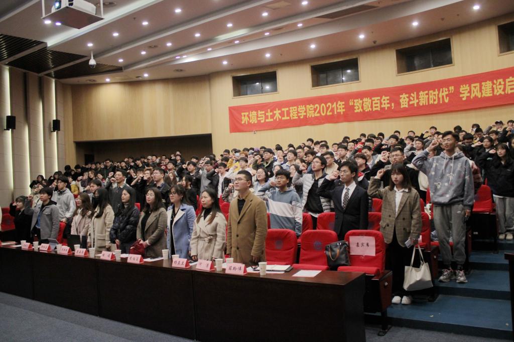 为激发广大学子的学习热情、营造良好的学风建设氛围,献礼建党100周年,3月19日晚,环境与土木工程学院2021年“致敬百年,奋斗新时代”学风建设启动仪式在远东报告厅隆重举行。学院党委副书记兼副院长胡娟,校学工处学生管理科瞿海琴老师,学院学工办主任兼团委书记周佳赟,辅导员薛羚伟、何涛,新生班主任杨兰兰以及兼职辅导员邵冰洁、周盼盼、饶锎月出席仪式,校学生会执行主席刘月,各学院学习促进中心负责人,新生班级副班主任,2020级全体新生,19级班级代表和研究生代表参加了本次仪式。