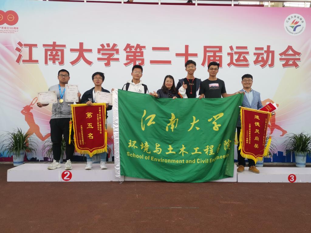 在两天的激烈角逐中,环土学子斗志昂扬、激情满怀。在个人项目中奋勇争先、步伐稳健,在团体项目中坚持不懈、默契十足,赢得了观众们的阵阵欢呼,取得了优异的成绩。郁秦杰获得男子铅球(7.26kg)第一名并打破校记录,李文杰获得男子110米栏第一名、男子100米第四名,鞠鹏羽获得男子400米第五名,白占杰和杨宇坚获得男子背夹球第三名,冯天懿和刘凯迪获得男子背夹球第六名,吴迪、吴晓龙、彭子健获得男子三人四足第六名,李文杰、白占杰、周仁杰、张志强获得男子4×100接力第八名,徐婉欣获得女子铅球第六名,宋子曼、王妍、丛原、王丽获得女子组4×400米接力第八名,周茹和张睿含获得女子组背夹球第七名,谷金娜等人获得旋风跑第一名,徐可欣等人获得团队跳绳第五名。经过大家的不懈努力,学院斩获男子团体总分第五名和体育道德风尚奖。