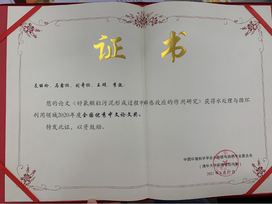 此外,李激教授团队研究生支丽玲、马鑫欣和刘奇欣等撰写的论文《好氧颗粒污泥形成过程中群感效应的作用研究》获得全国优秀论文奖。多年来,玩偶姐姐