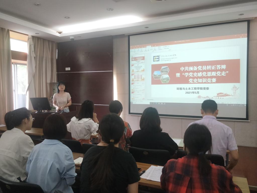5月31日上午,环境与土木工程学院举行2021年上半年预备党员转正答辩暨“学党史感党恩跟党走”知识竞赛。院党委副书记兼副院长胡娟、专职组织员沈炎、院团委书记周佳赟、辅导员何涛担任评委,符合基本条件的预备党员参加答辩。研究生2020级党支部书记王芮主持活动议。