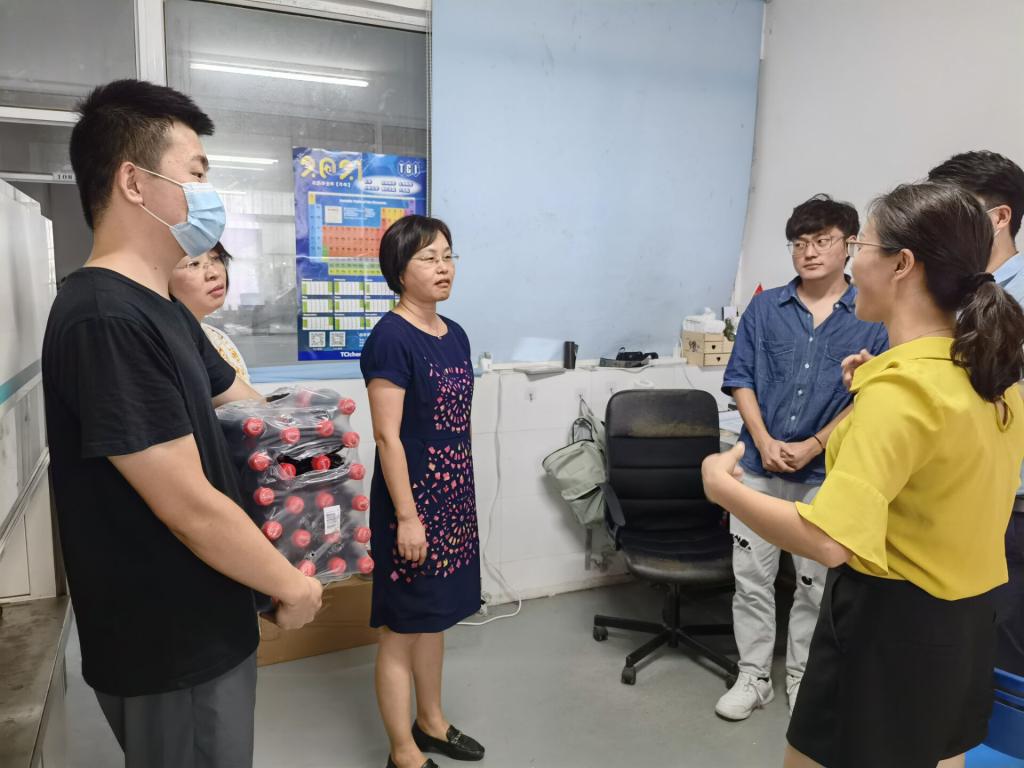 2021年9月17日,环境与土木工程学院党委书记李艳,党委副书记、副院长胡娟,学工办主任周佳赟,辅导员薛羚伟、何涛、李东辉,携慰问品前往学生宿舍、实验室慰问留校学生。