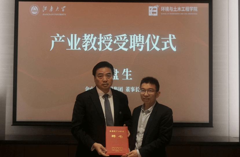 在国家自然科学基金重大项目上零突破;首获国家重点研发计划项目;首获江苏省高等学校优秀科技创新团队;环境科学专业获批省一流本科专业建设点;与董事单位浙江巨能环境共建校企协同创新实验室,实现学院首个千万级横向科研项目零突破。社会资源处处长黄敏为江苏金山环保工程集团董事长、党委书记钱盘生颁发产业教授聘书。产业教授是学校与企业之间沟通、合作的桥梁与纽带,是推动产学研合作再上新台阶的重要载体,为学院人才培养、团队建设、科研成果转化带来新的思想、新的力量和新的机遇。