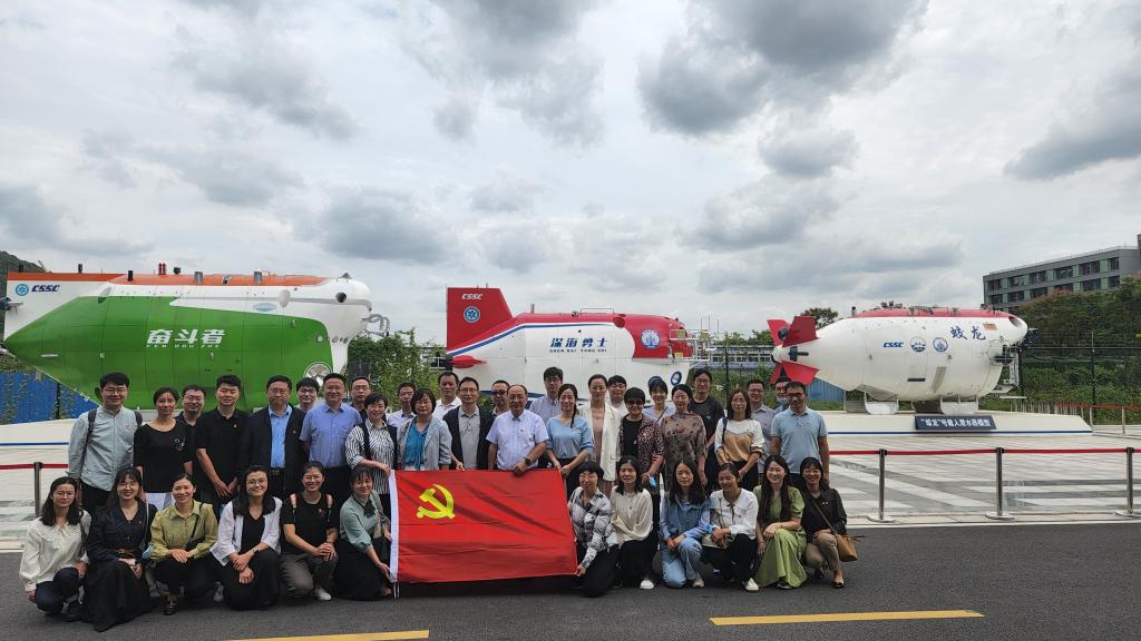 主题党日活动中,党员同志们参观了深海技术科学太湖实验室,看到户外广场上一字排开的载人深潜“大国重器”实尺度模型,大家纷纷感到骄傲与自豪,表示要自觉坚定“四个自信”,增强“四个意识”,做到“两个维护”,以实际行动迎接党的二十大胜利召开。