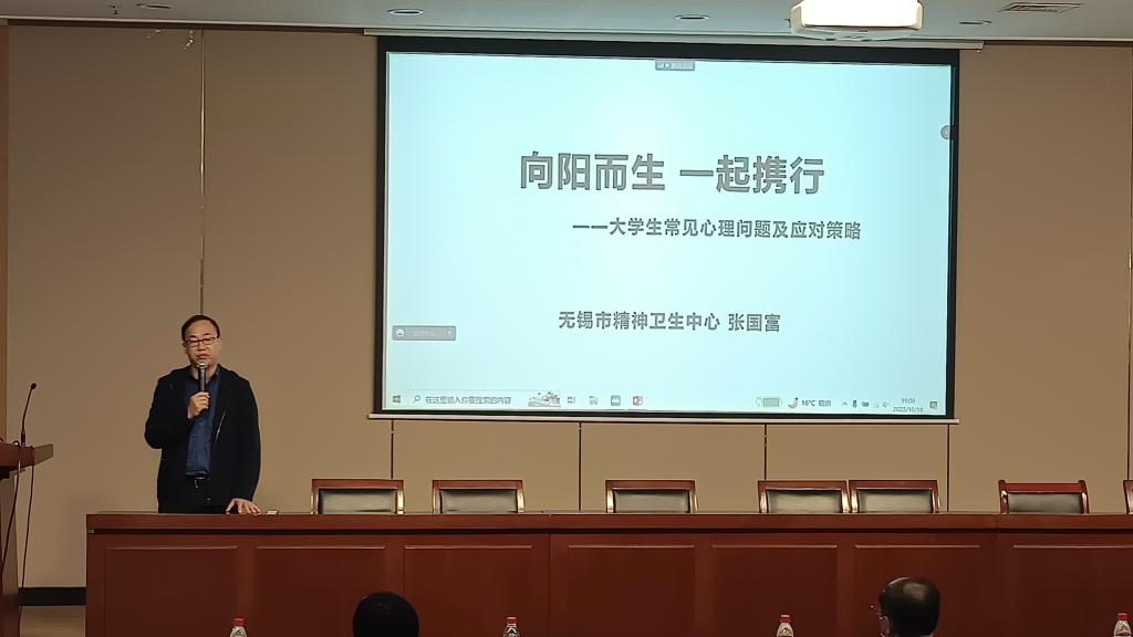 为普及心理健康知识,帮助青年大学生更快更好地适应大学校园生活,以积极健康心态应对生活学习压力。2022年10月18日,环境与土木工程学院在图书馆305开展杏坛听语第13期、环境与土木工程学院导师学校培训、2022级新生转型教育系列活动暨“向阳而生 一起携行”心理健康讲座,由无锡市精神卫生中心张国富主任医师受邀担任主讲人,全体2022级新生、研究生导师参加了本次讲座。学院党委副书记胡娟主持。