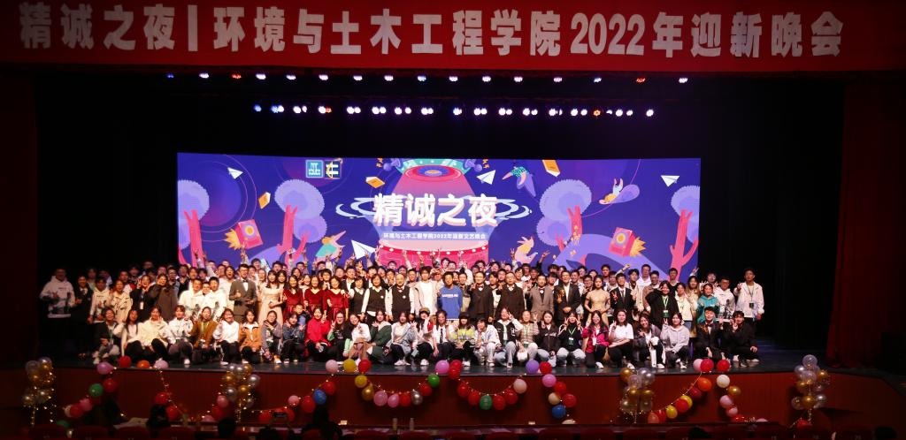 流光溢彩迎新夜,莘莘学子启征程。11月13日晚,环境与土木工程学院2022年“精诚之夜”迎新文艺晚会在文浩馆隆重举行。学院全体班子成员、各系专业教师、班主任、辅导员、部分学院教师代表、学生会负责人、2021级和2022级全体学生共700余人参加了此次活动。