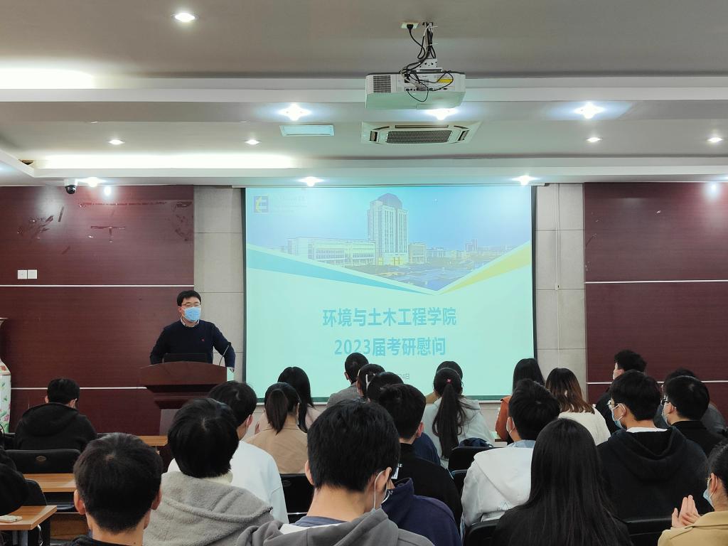 2022年11月24日中午,环土学院考研慰问活动在学院楼D303顺利召开。本次活动旨在了解学院考研同学的备考状态,鼓励考生积极备考,保持良好的心态迎接即将到来的全国硕士研究生统一招生考试。环土学院党委副书记兼副院长胡娟、分团委书记兼学工办主任周佳赟、辅导员何涛、李东辉以及报考研究生考试的2019级本科生参加了本次活动,毕业班辅导员薛羚伟主持。