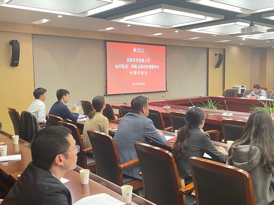 2023年4月28日下午,按照省委教育工委办公室《关于开展首批全省党建工作示范高校、标杆院系、样板支部培育创建单位中期评估的通知》(苏委教办函〔2022〕39 号)精神及校《关于首批全省党建工作标杆院系、样板支部培育创建单位中期评估的通知》,在行政楼B307由党委组织部组织召开了培育创建单位中期评估会,党委办公室、党委组织部、纪委办公室、党委巡察工作办公室、党委宣传部、党委教师工作部代表和培育创建单位相关负责人参加会议。