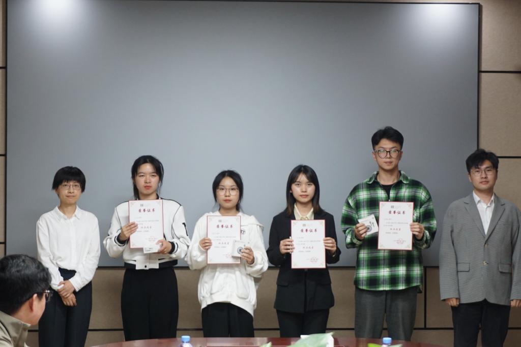 邵钰棋、肖博文为学院优秀学生颁发奖品和证书