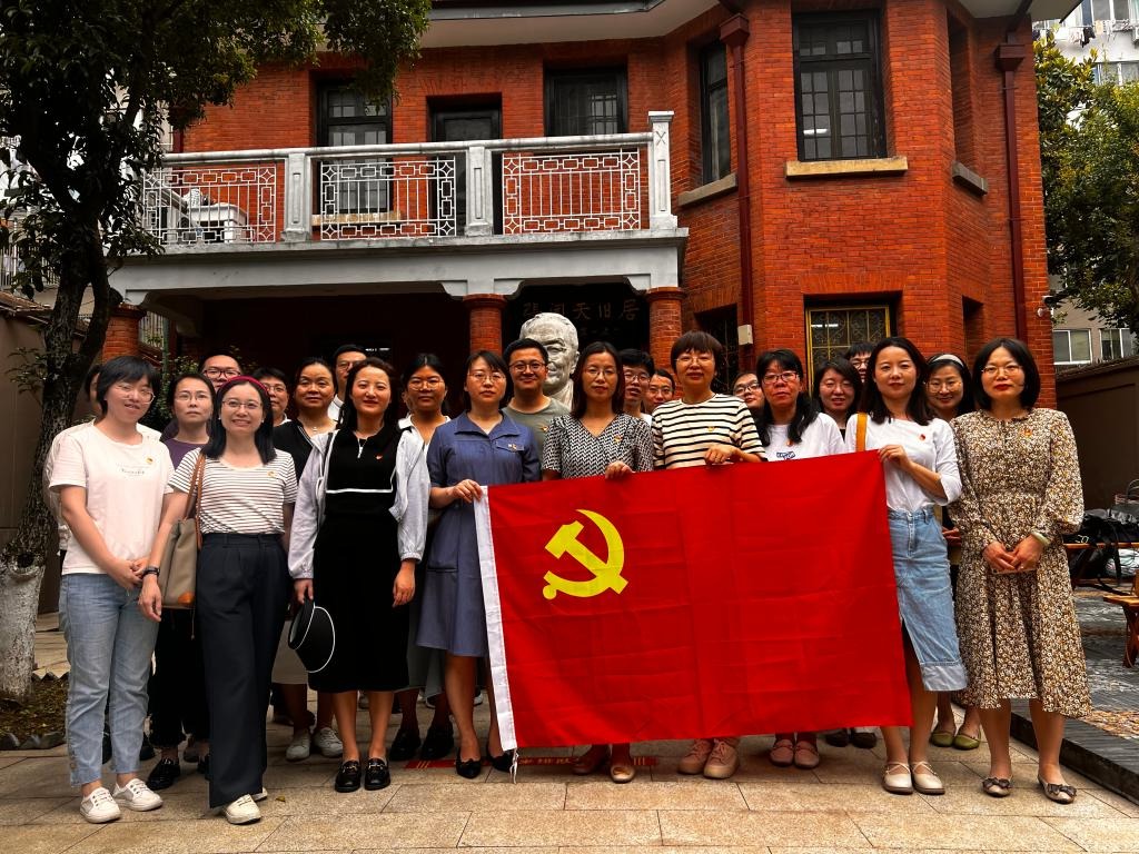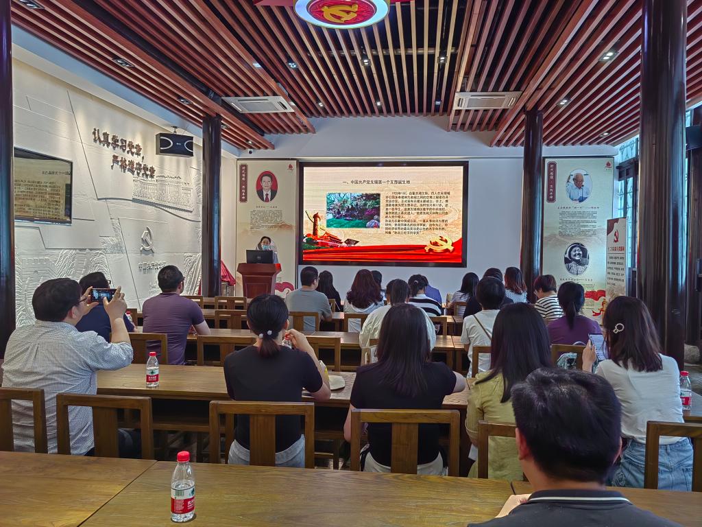 “无锡第一支部”党建基地,是中国共产党无锡第一个支部诞生地,是苏南地区第一面五星红旗升起的地方。在党建基地,全体党员同志瞻仰了秦起烈士铜像、第一支部会址群雕等,观看了教育片《誓言颂》,张衍书记带领大家宣誓重温入党誓词,大家坚定了理想信念,表示要继续锤炼党性修养,要学习革命先辈们无限忠诚的政治品格,始终在思想上政治上行动上与以习近平同志为核心的党中央保持高度一致,树牢“四个意识”、坚定“四个自信”、做到“两个维护”。随后,郁红艳领学了习近平主持二十届中共中央政治局第五次集体学习并发表重要讲话精神,大家深受鼓舞,纷纷表示作为高校教育工作者要坚定理想信念、陶冶道德情操、涵养扎实学识、勤修仁爱之心,树立“躬耕教坛、强国有我”的志向和抱负,坚守三尺讲台,潜心教书育人。