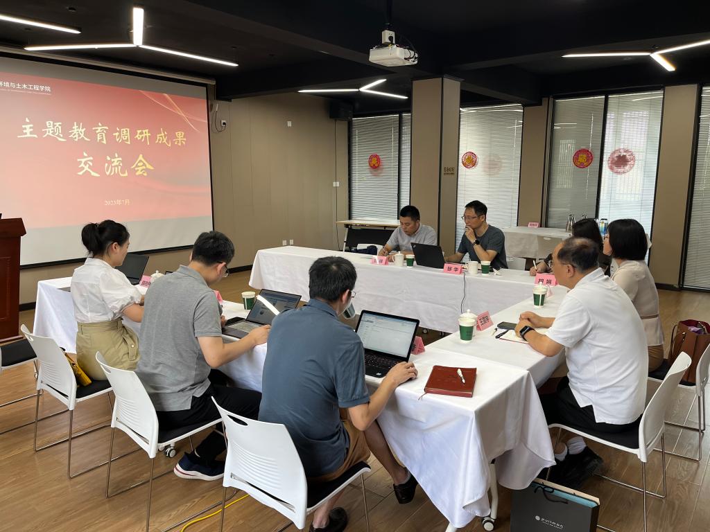 7月21日,环境与土木工程学院召开学习贯彻习近平新时代中国特色社会主义思想主题教育领导班子调研成果交流会,学院全体班子成员出席,院党委书记李艳主持会议。