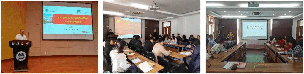 学院抓牢第一课堂、扩展第二课堂、开辟第三课堂,形成三维立体多角度课程思政模式。抓牢课堂教学第一课堂,将思政元素落实到课程目标设计、教学大纲修订、教案课件编写等各环节。设立了课程思政示范课程培育计划,以课程思政示范课程建设为立足点,鼓励专业任课教师与思政课专任教师、基层党支部联合申报和推动教学改革项目实施。充分发挥“教师育人工作室”在课程思政建设中的作用,加强对青年教师和学生的思想政治引导。