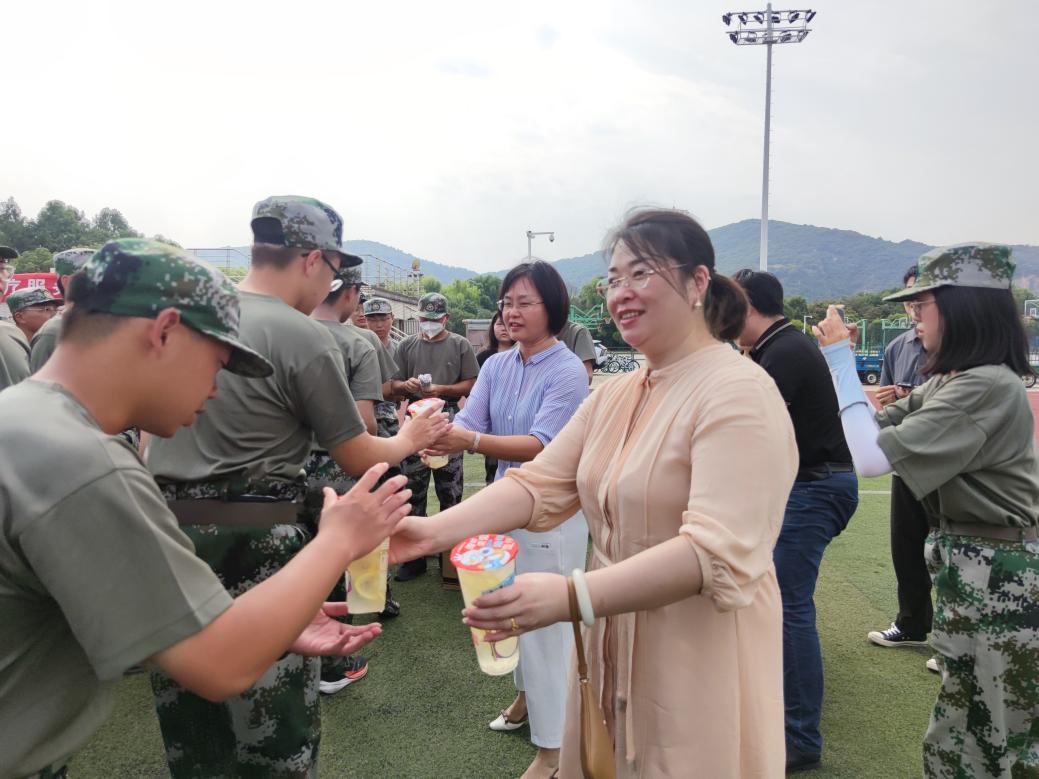 2023年9月11日下午,环境与土木工程学院党委书记李艳,副书记兼副院长胡娟以及人民武装部军事训练科刘璇刚老师一行,前往军训场亲切慰问正在进行军训的2023级学生。