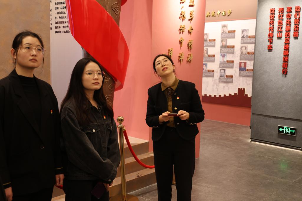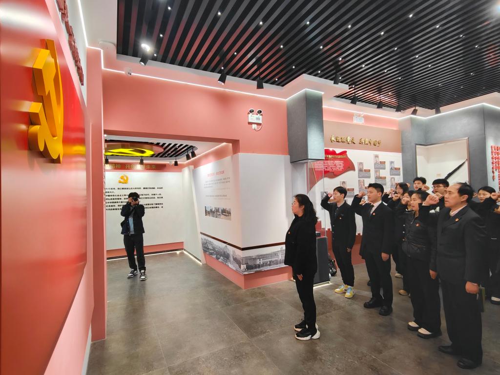 祭扫结束后,师生们依次进入陈列馆,周期老师结合史实讲述了无锡先烈武装抗日斗争的英雄革命事迹,在馆内,全体党员在胡娟书记的领读下,重温入党誓词,不忘初心,牢记使命。