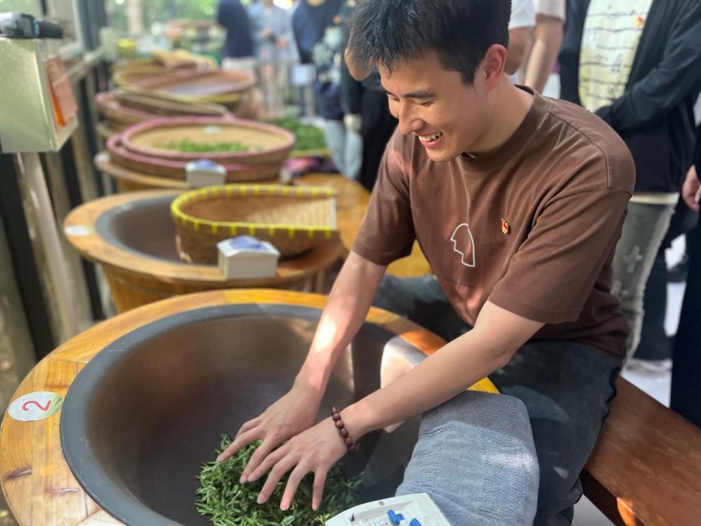江苏省茶叶研究所、无锡市技术能手费佳以“怎样喝好一杯茶”为主题,为现场师生党员讲述了茶道的历史,她分别从选茶、泡茶、品茶以及存茶四个方面进行讲解。在场师生党员品尝了研究所准备的黄茶,在品茶的过程中,大家体味到了茶的香气与文化的韵味,更感受到中国传统文化的博大精深。随后,大家来到制茶室观摩并亲自体验手工制茶。高级农艺师、江苏省技术能手、全国农业技术能手邵元海师傅现场讲解并演示茶叶加工步骤,他现场对茶叶进行手工杀青、揉捻,在观摩师傅制茶过程中,许多党员燃起了兴趣,在邵师傅的指导下亲手体验了炒制茶叶,感受劳动的乐趣。最后茶研所党支部书记周静峰带领师生党员们参观了茶研所种植的各种各样的盆栽茶树,有鸭屎香、黄观音、宜兴奇曲等平日里不常见的品种,并现场介绍了如何采茶、茶叶的具体功效以及如何将茶叶入菜,这些知识生动有趣,党员们纷纷表示收获颇多并受益匪浅。