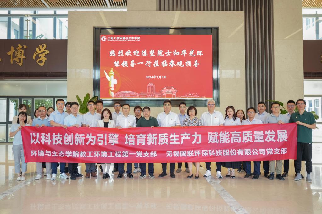 教工环境工程第一党支部与无锡国联环保科技股份有限公司党支部在东氿校区举办“以科技创新为引擎 培育新质生产力 赋能高质量发展”专题研讨沙龙党建共建活动。中国工程院院士、未来食品科学中心首席科学家陈坚,未来食品科学中心副主任汪超,无锡华光环保能源集团股份有限公司党委委员、副总经理朱俊中,技术创新中心顾问宋联,玩偶姐姐