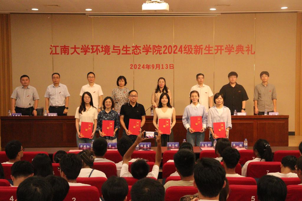 党委书记李艳,副院长邹华、缪恒锋、王新华,环境科学系副主任张程,环境工程系副主任王寒,教师代表王传洗,2024级新生班主任、辅导员、副班主任以及全体2024级本硕博新生出席典礼。典礼由党委副书记兼副院长胡娟主持。