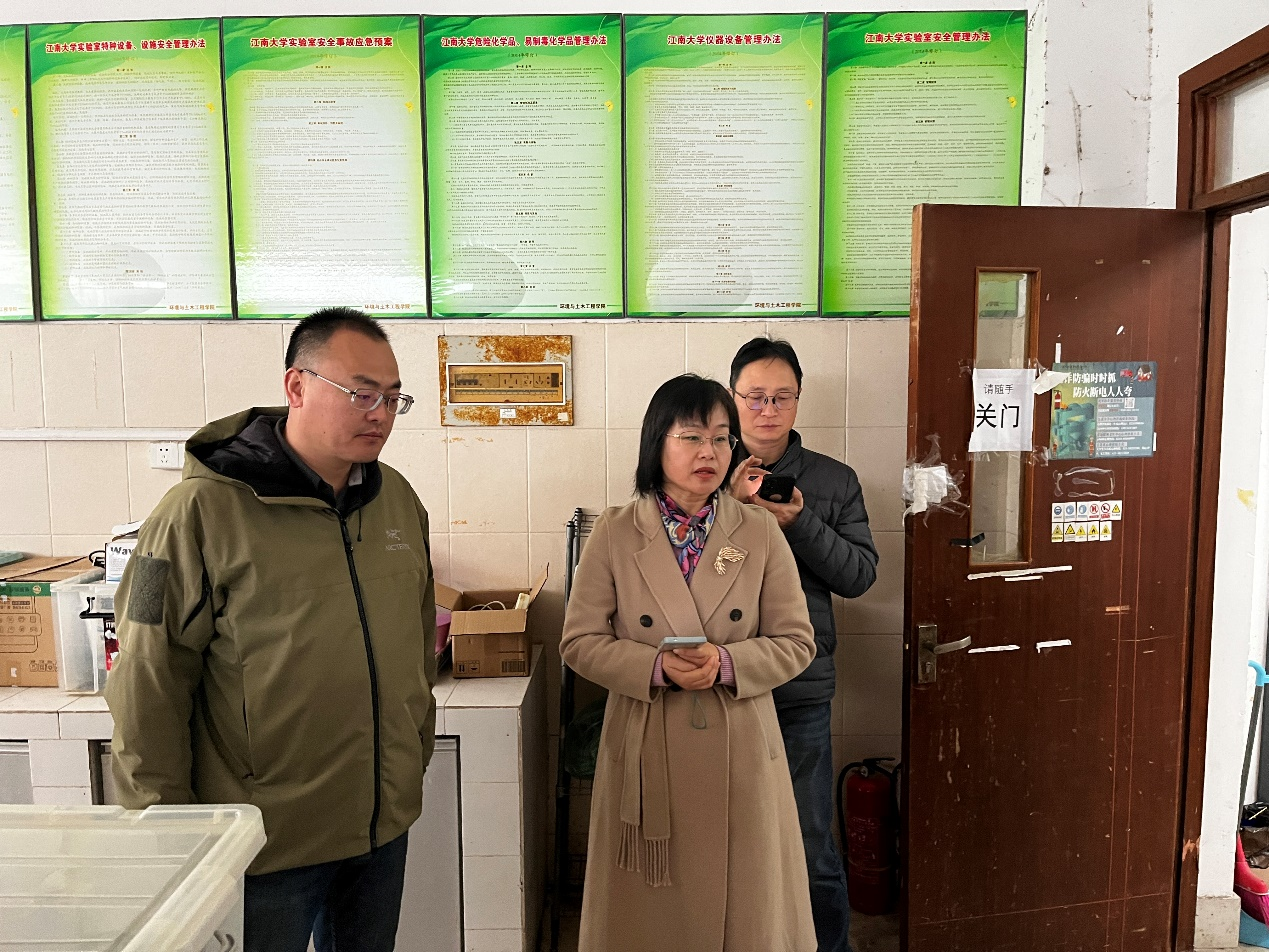 李艳一行现场检查了位于实验中心、协同创新中心相关实验室运行情况,针对消防安全、化学品储存、紧急应急设施、实验室废弃物处置、电气线路的安全情况等提出了指导和整改意见,要求切实做好新学期伊始实验室安全管理工作。针对检查中发现的问题,李艳强调,师生要绷紧安全之弦,防患于未然,认真落实整改发现的问题,着力建设“层层负责、人人有责、各负其责”的工作体系。学院将建立整改台账,明确责任人和整改期限,定期复查整改落实情况,确保问题整改到位”