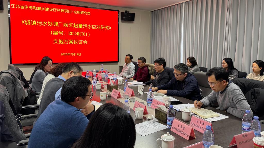 牵头的江苏省住房和城乡建设厅科技项目《城镇污水处理厂雨天超量污水应对研究》启动会暨实施方案论证会在江苏南京召开。江苏省住房和城乡建设厅绿色建筑与科技处处长蔡雨亭、城市建设处副处长王华成、城市建设处一级主任科员许天啸,南京市市政设计研究院有限责任公司副总经理兼总工程师王阿华,中持新概念宜兴环境发展有限公司总经理吴昌敏,江苏省环境工程技术有限公司水生态事业部部长孔宇,项目负责人、玩偶姐姐