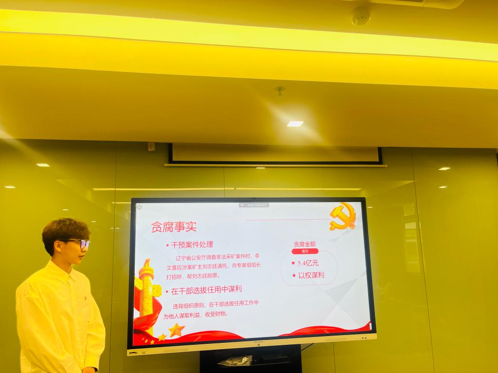 支部党员李学栋同志以《铁纪入心,固本培元》为题,回顾中央八项规定制定和落实的过程,深入学习领会中央八项规定及其实施细则精神。李乐琰同志以《以案为镜,警钟长鸣》为题,以辽宁省政协原党组成员、副主席李文喜受贿案为反面教材,深入剖析其严重违纪违法的全过程,让广大党员深刻认识到纪律红线的不可触碰性。随后支部党员以交流讨论,知识竞答等方式进行学习,并通过《情境再现,以演促警》情景剧表演,还原科研过程中的关键场景与易出现的偏差行为,旨在让研究生党员们深刻认识到科研之道,始于严谨;为人之道,贵在正直。