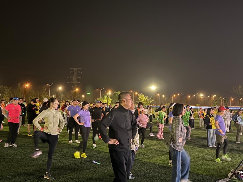 随后,杨延、李艳、赵莹、缪恒锋共同鸣枪发令,在曲水桥跑团成员的领跑下,百余名师生如潮水般涌出起跑线。统一的服装、矫健的步伐、响亮的口号,构成了夜色中最动人的风景。赛道上,师生们你追我赶,相互鼓励,用汗水诠释着青春的活力与拼搏的意义。